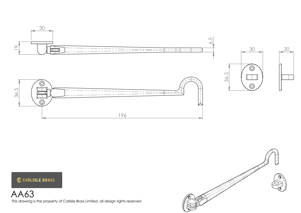Carlisle Brass AA63 202mm Silent Patern Cabin Hook