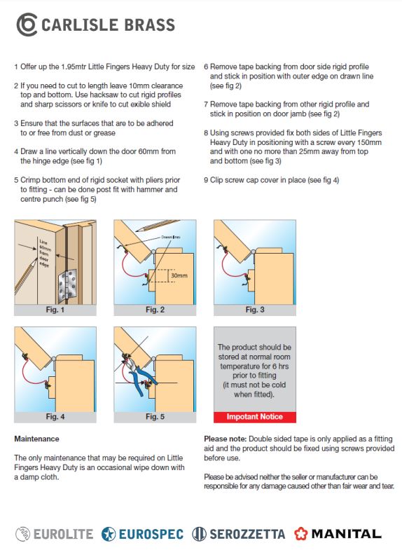 A flexible safety strip which prevents fingers being trapped on the hinge side of a door. One for the front of the door and one for the rear (sold separately). Of the 30,000 finger-trapping accidents every year in the UK the vast majority occur in the large gap in front of the hinge as the door closes, but the rear of the hinge also presents a potential hazard to careless small hands. These devices fit most doors and are simplicity itself to install. They are designed and tested to be durable and eliminate the possibility of finger trapping accidents. Improves acoustic and draught proofing performance. Finger protection systems are now installed in many public and private establishments and are rapidly becoming an essential fixture in schools and healthcare centres nationwide. They are now considered a necessity by Health & Safety officers nationwide and worldwide. Available in Brown or White finishes.