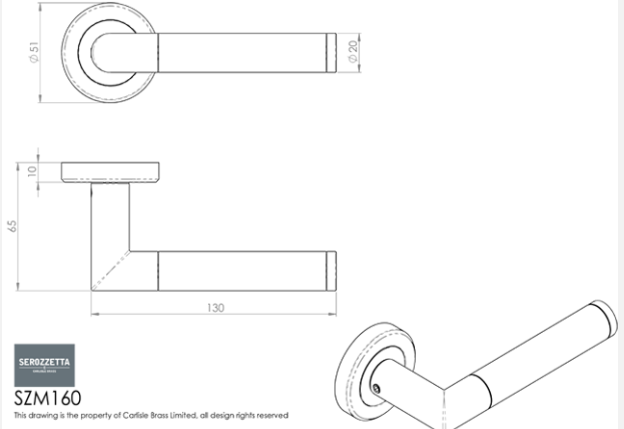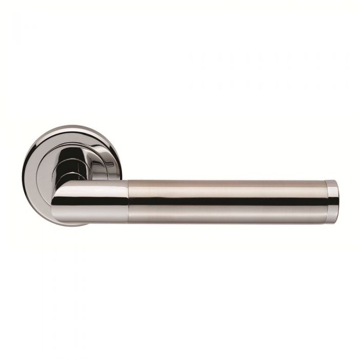 Lever on a concealed fix 2 part screw on round rose. The Trend lever is a round bar sectional lever with a mitred corner. A favoured choice within the Serozzetta range, the combination of dual finish and the timeless design is guaranteed to suit both the home and office environment. The chamfered edge concealed fix rose reflects the attention to detail in this range. Comes with a 10 year mechanical guarantee and is Fire door rated. Suitable for domestic and commercial use.