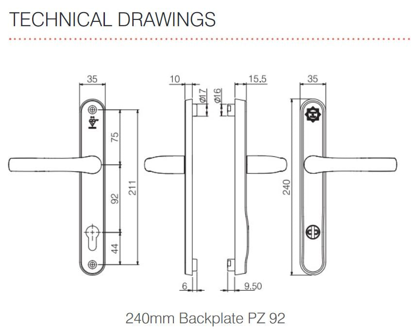 Mila Pro Secure Lever Handle On Plate 92mm Center Euro Profile Top & Bottom Fix 240mm