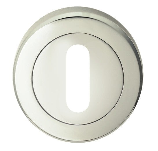 Round escutcheon with a chamfered edge, screw on rose, concealed fix.Standard lock profile. Designed to match the Serozzetta SZR Residential range of designer handles on round roses.